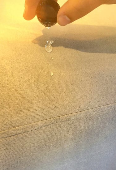 Com a impermeabilização de tecidos, líquidos permanecem na superfície, formando gotas que podem ser facilmente removidas com um pano seco ou papel toalha.