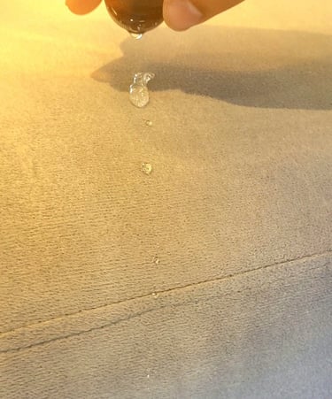 Com a impermeabilização de tecidos, líquidos permanecem na superfície, formando gotas que podem ser facilmente removidas com um pano seco ou papel toalha.